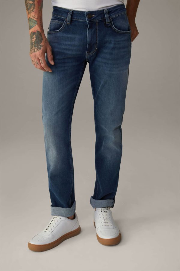 Le jeans Flex Cross Robin, confectionné en denim très doux à la finition stretch, offre un grand confort. Doté d’une coupe 5 poches rehaussée de plis créant un effet déjà porté, et fermé par une braguette zippée classique, cet essentiel est une pièce polyvalente intemporelle idéale pour les loisirs ou pour le travail. Sa coupe slim relooke la silhouette.